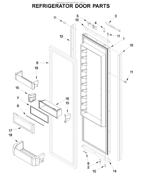 The Dairy Bin is an OEM replacement part for Whirlpool's built-in and integrated refrigerator side-by-side door shelves. It provides a designated space optimized for storing dairy products.