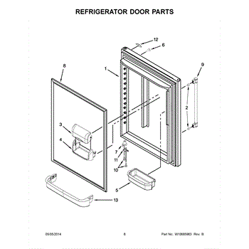 Seals the fresh food compartment door to maintain proper temperature and prevent air leaks. Replace if torn, cracked, or not sealing properly. Confirm fit.