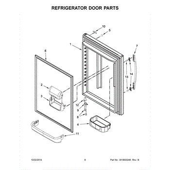 Seals the fresh food compartment door to maintain proper temperature and prevent air leaks. Replace if torn, cracked, or not sealing properly. Confirm fit.