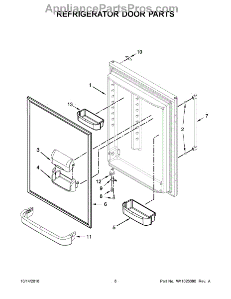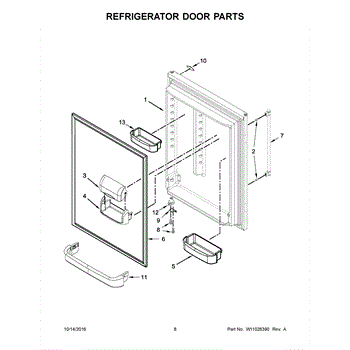Refrigerator door gasket seals the door opening to maintain temperature. Replace if torn, cracked, or compressed. Confirm fit with your model number.