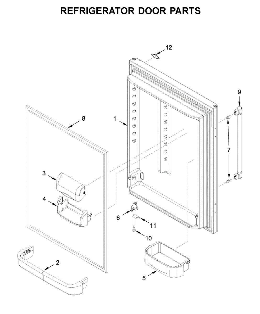 Secures refrigerator door handle to the door panel. Replace if missing, stripped, or corroded to restore proper handle attachment and prevent loosening.