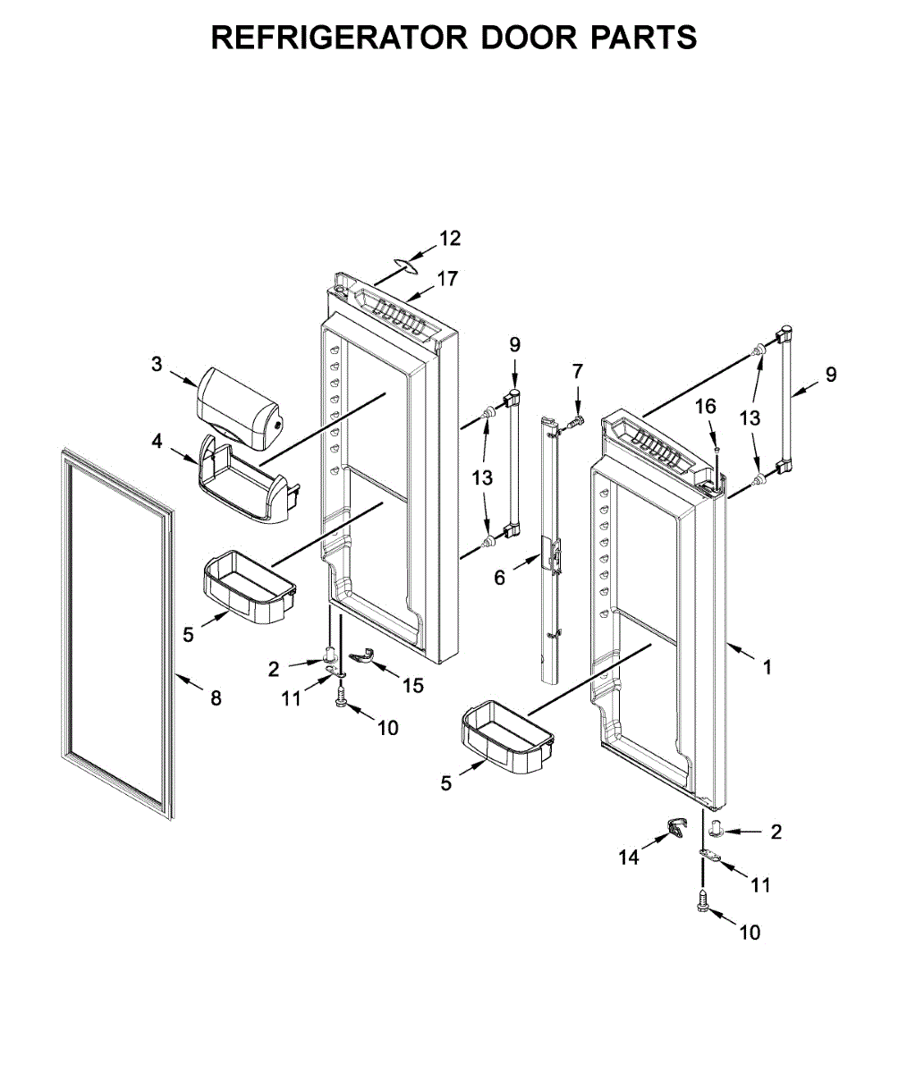 The Door Shelf Bin is an OEM part for Whirlpool refrigerators. This bin is designed to fit into the door of the refrigerator, providing additional storage space for items such as bottles, condiments, and small containers. This door bin measures about 15 inches wide by 3 inches high by 8 inches deep.