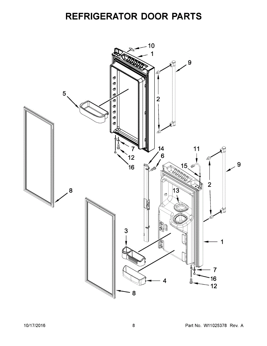 The Door Bin is an OEM part for Whirlpool refrigerators. It attaches to the inside of the refrigerator door, offering convenient storage for condiments, bottles, and other items, maximizing space and keeping your refrigerator organized. This bin is designed to be easily removable for cleaning and adjusting storage needs. The bin measures about 16 inches wide by 6 inches high by 8 inches deep.