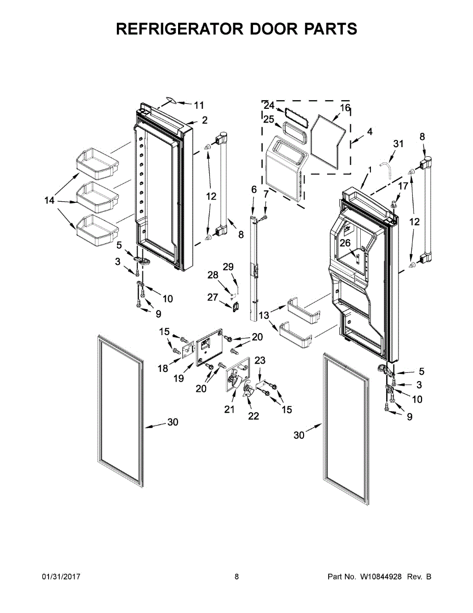 This Mullion Rail trim piece replaces a damaged or worn refrigerator door mullion to restore a finished appearance and help maintain a proper door seal. It fits the vertical trim area between the door and cabinet. What it does: