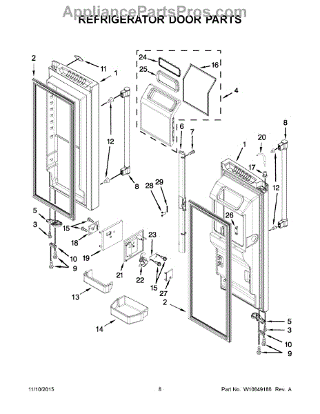 This mullion rail is the trim piece that covers and seals the vertical edge of the refrigerator/freezer door, restoring a clean appearance and helping maintain a tighter seal at the door edge. Ideal for replacing cracked, warped, or missing trim. What it does: