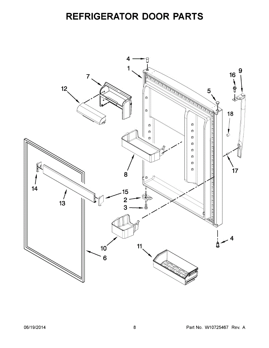 Replacement door bin for refrigerators. Mounts inside the refrigerator door to hold drinks, condiments, and snacks. Replaces cracked or broken bins.