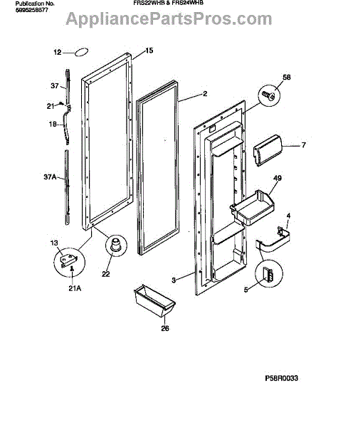 Parts for Frigidaire FRS22WHBD0: 03 - Refrigerator Door Section Parts