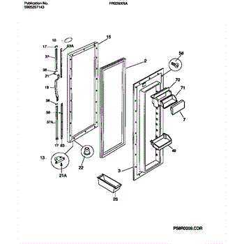 Egg container for refrigerator door storage. Replace if cracked, broken, or missing. Holds eggs securely in fridge door shelf compartment.