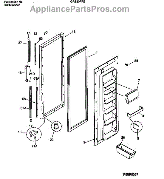 The Door Shelf Support is an OEM part for Frigidaire refrigerators, designed to hold and support the shelves on the inside of the refrigerator door. This part ensures that door shelves are securely mounted, providing stable storage for bottles, condiments, and other items.