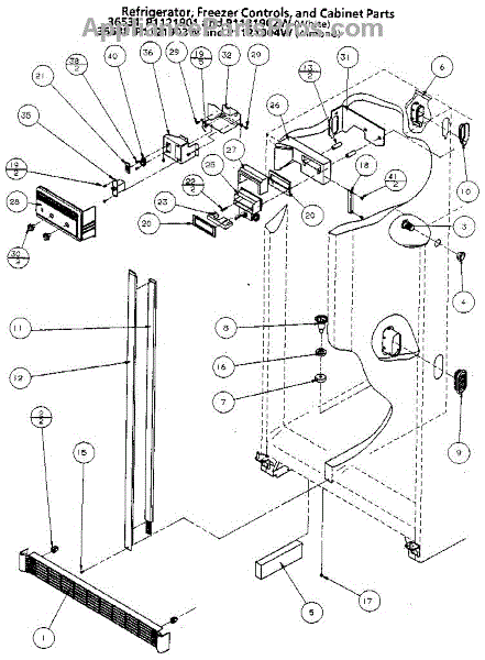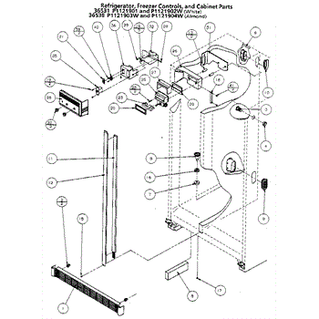 Parts for Amana 36538-P1121903W: Refrigerator, Freezer Controls, And Cabinet Parts