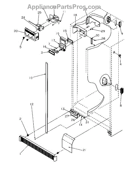 Parts for Amana SBD20S4E-P1190001WE: Refrigerator / Freezer Controls And Cabinet Parts