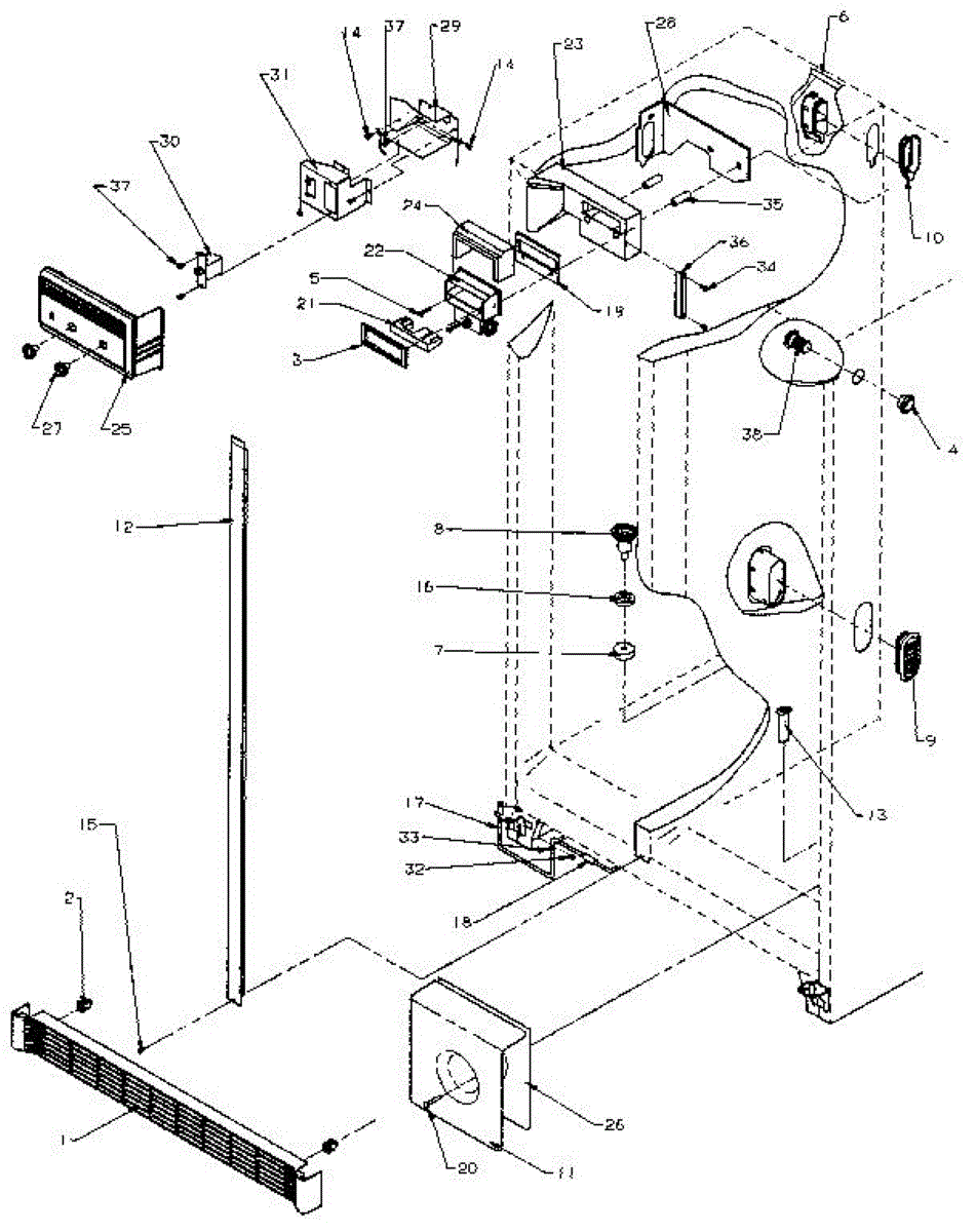 Parts for Amana SXD25N-P1162406W: Refrigerator / Freezer Controls And Cabinet Parts