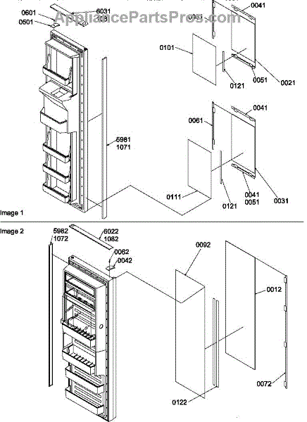Parts for Amana SRD25VPSE-P1190331WE: Refrigerator / Freezer Door Trim And Panels Parts