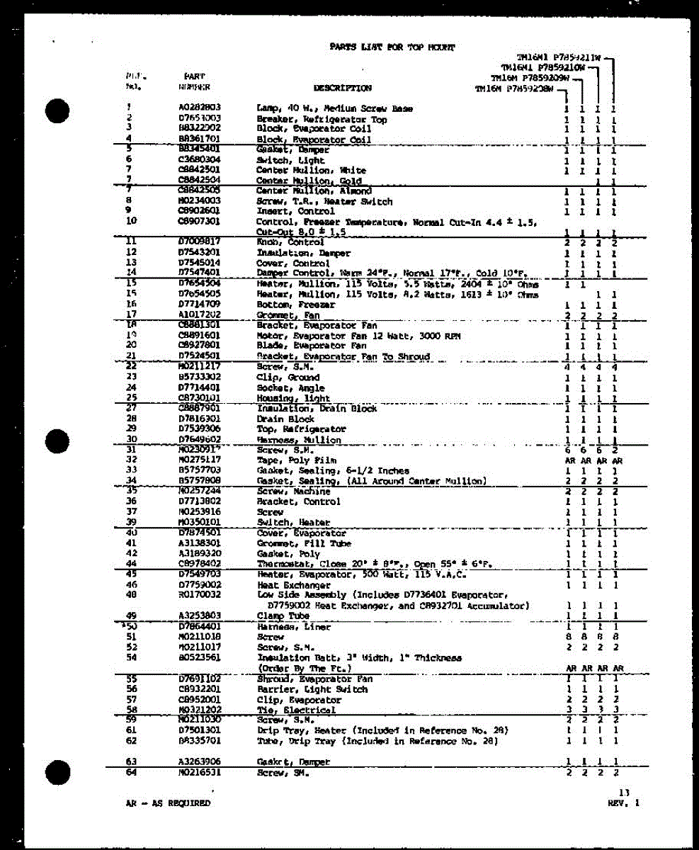 Parts for Amana TM16M1-P7859211W: Refrigerator Freezer Functional Parts (Tm16m / P7859208w) (Tm16m / P7859209w) (Tm16m1 / P7859210w) (Tm16m1 / P7859211w) Parts