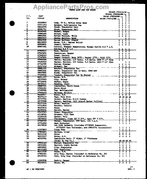 Parts for Amana TM20M-P7859217W: Refrigerator Freezer Functional Parts (Tm16m / P7859208w) (Tm16m / P7859209w) (Tm16m1 / P7859210w) (Tm16m1 / P7859211w) Parts