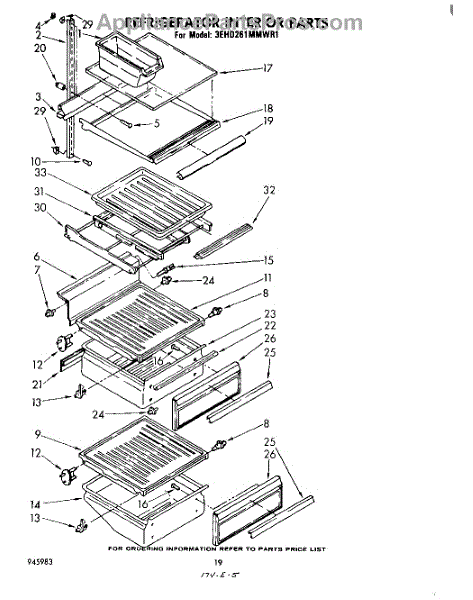 This screw is used to secure the handle end cap to the center of the door. The screw size measures 8-18 x 1/2 inches.