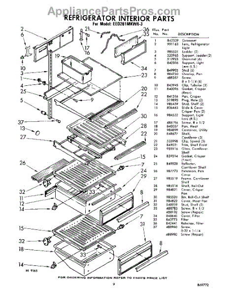 Parts for Whirlpool EED261MKWR3: 09 - Refrigerator Interior Parts