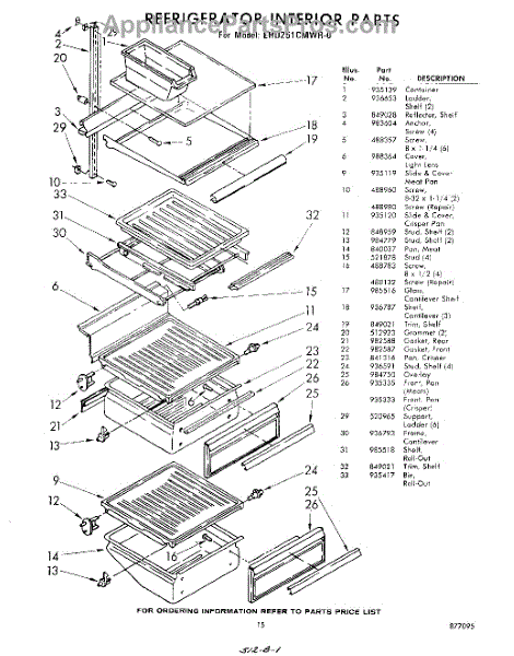 Parts for Whirlpool EHD251CMWR0: 15 - Refrigerator Interior Parts
