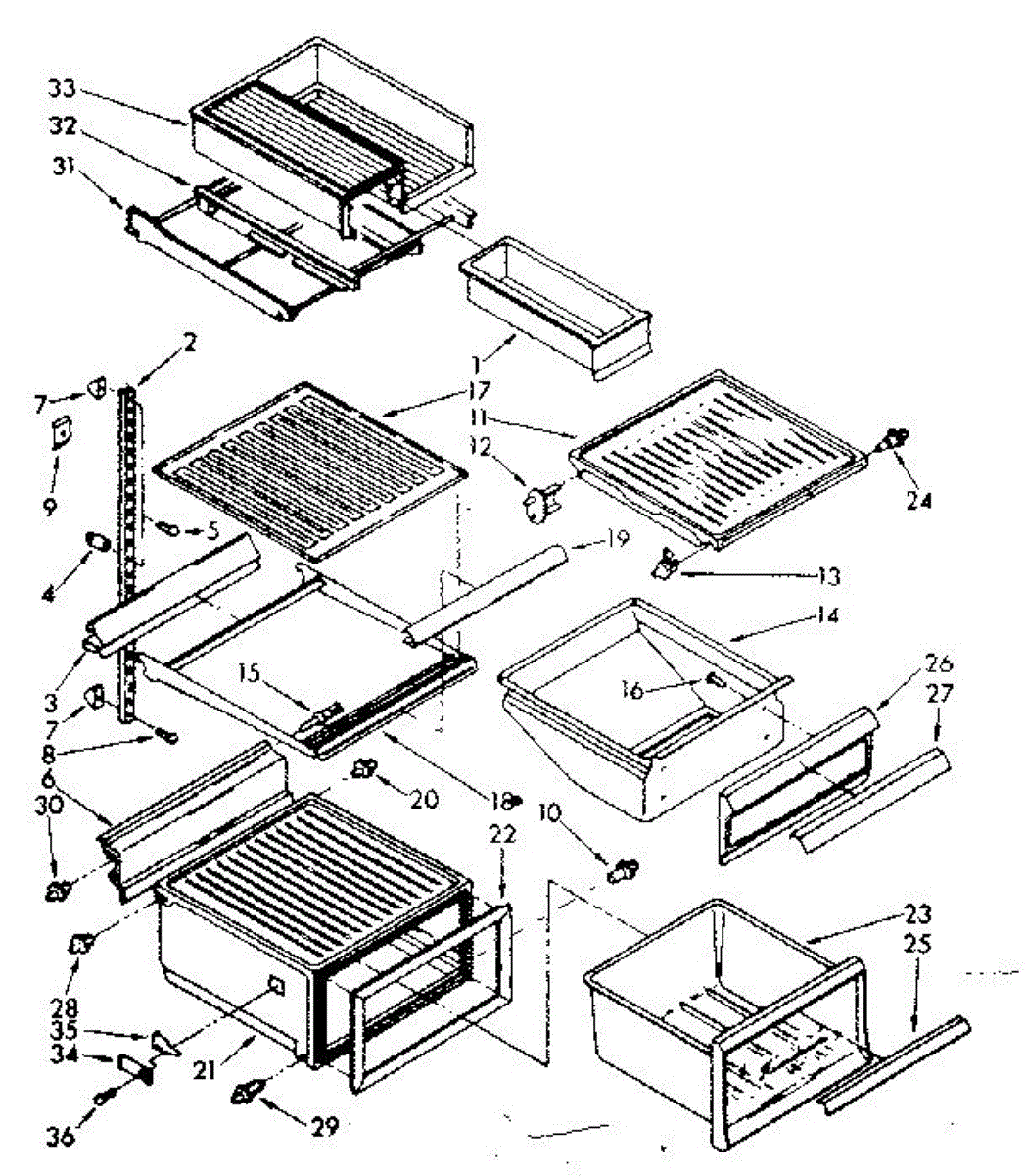 Parts for Kenmore 106.8532812 (1068532812, 106 8532812): Refrigerator Interior Parts