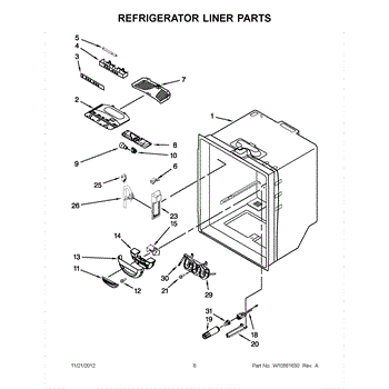 This base damper cove is the plastic cover that protects and supports the refrigerator damper assembly, keeping airflow components secure and helping maintain proper internal airflow. Replacing a damaged cove prevents loose parts and air leaks. What it does: