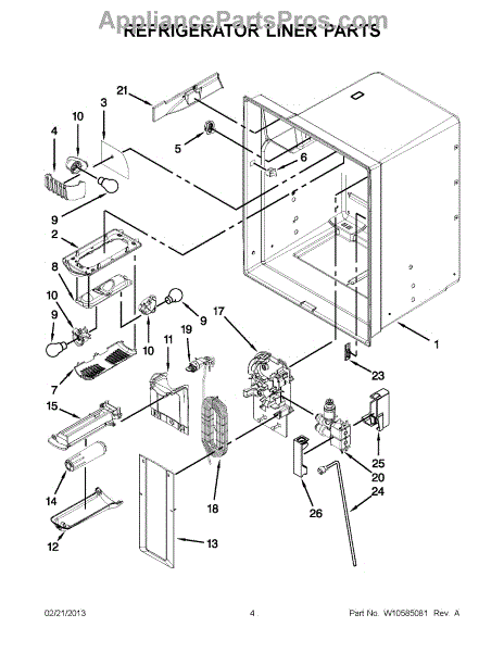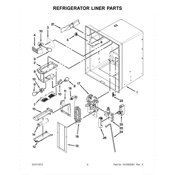The Reservoir is a Whirlpool OEM replacement part for Whirlpool side-by-side refrigerators. This assembly does include the filter head. The filter head connects the external filter cartridge to the internal reservoir. The reservoir holds filtered water that is dispensed from the external door dispenser. Causes can be normal wear to sealing components, cracks in plastic from repeated pressure changes, or mineral buildup affecting water flow. Symptoms of a problem include: