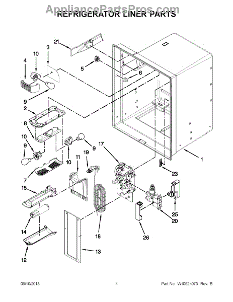 The Reservoir is a Whirlpool OEM replacement part for Whirlpool side-by-side refrigerators. This assembly does include the filter head. The filter head connects the external filter cartridge to the internal reservoir. The reservoir holds filtered water that is dispensed from the external door dispenser. Causes can be normal wear to sealing components, cracks in plastic from repeated pressure changes, or mineral buildup affecting water flow. Symptoms of a problem include: