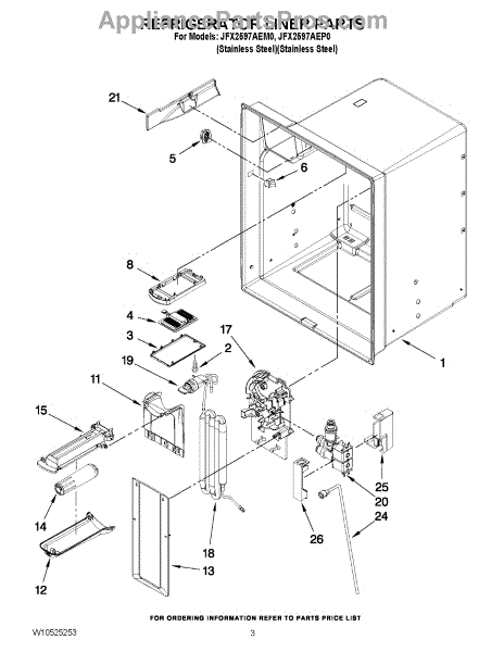The Reservoir is a Whirlpool OEM replacement part for Whirlpool side-by-side refrigerators. This assembly does include the filter head. The filter head connects the external filter cartridge to the internal reservoir. The reservoir holds filtered water that is dispensed from the external door dispenser. Causes can be normal wear to sealing components, cracks in plastic from repeated pressure changes, or mineral buildup affecting water flow. Symptoms of a problem include: