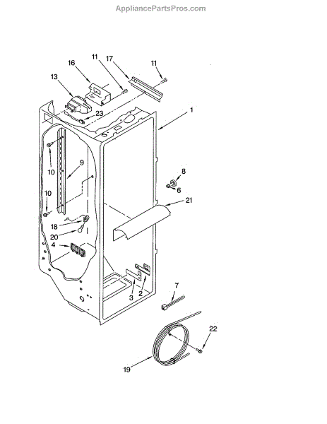 This ice container assembly holds and channels cubed ice from the ice maker to the dispenser area, keeping ice contained and ready for use. It replaces a cracked, warped or missing ice bin to restore normal ice storage. What it does