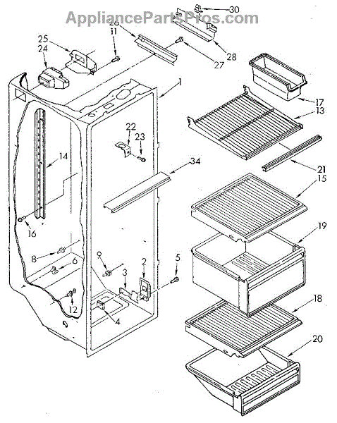 The Air Diffuser Assembly is an OEM part for Whirlpool refrigerators. It regulates the airflow between the refrigerator and freezer compartments, ensuring the proper distribution of cold air to maintain the desired temperatures in both sections.