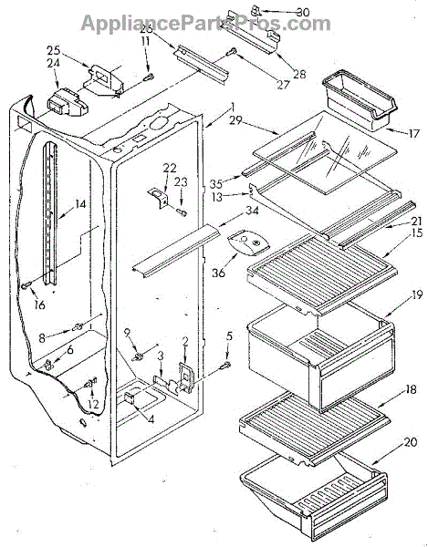 The Air Diffuser Assembly is an OEM part for Whirlpool refrigerators. It regulates the airflow between the refrigerator and freezer compartments, ensuring the proper distribution of cold air to maintain the desired temperatures in both sections.