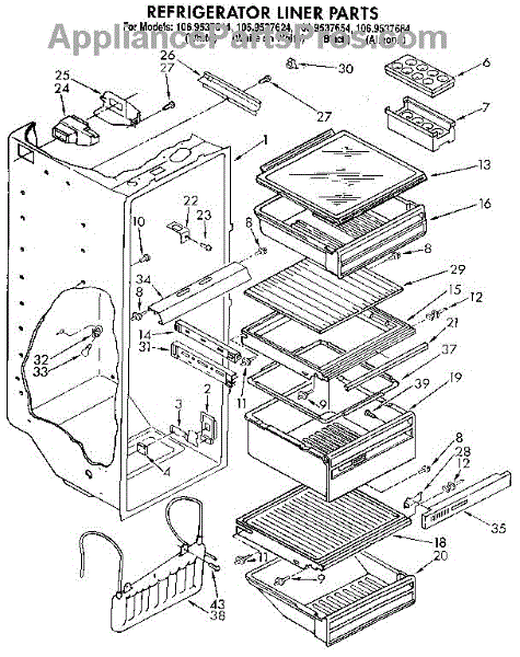 Parts for Kenmore 106.9537654 (1069537654, 106 9537654): Refrigerator Liner Parts