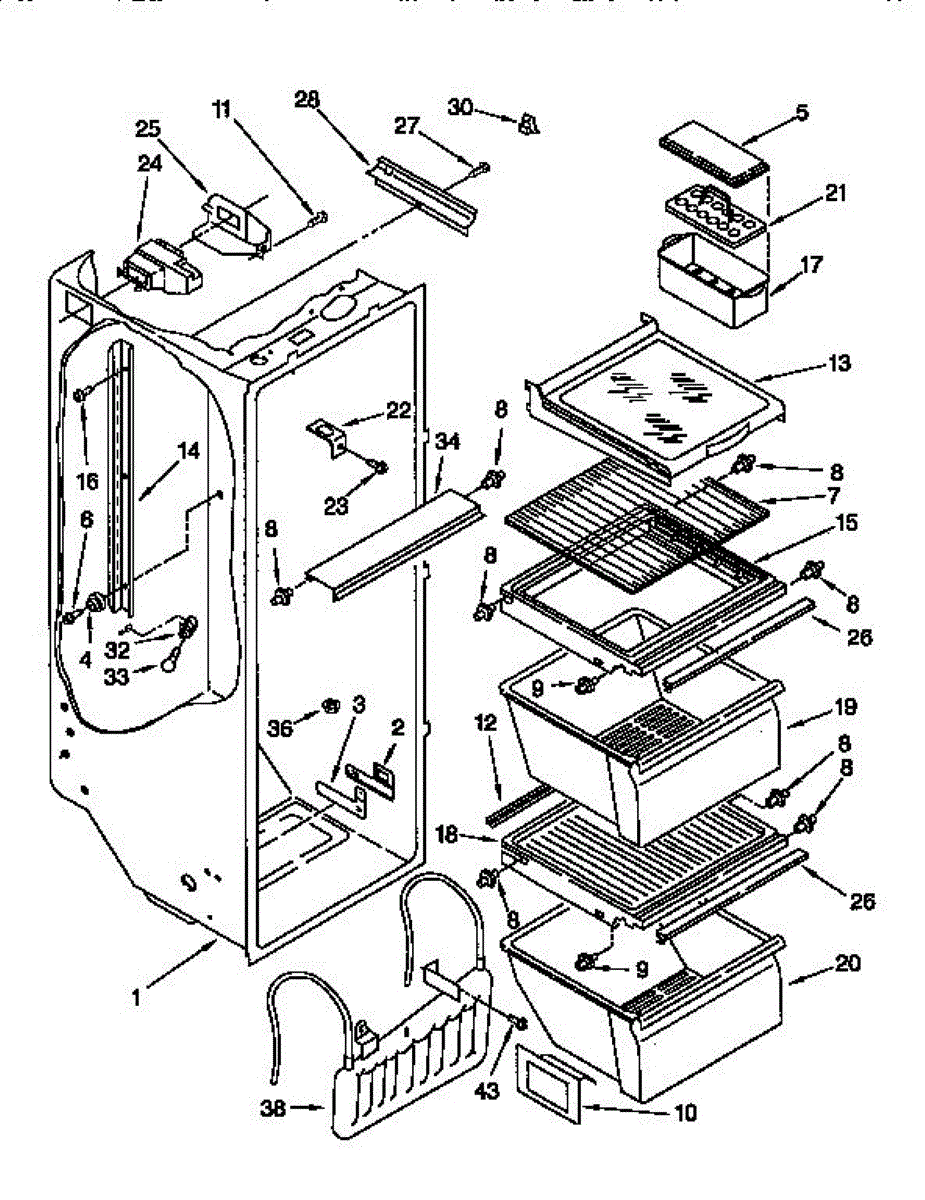 This air deflector directs chilled air inside the refrigerator's fresh-food compartment to maintain even cooling and proper circulation. It replaces a damaged or missing deflector so cold air reaches interior shelves and drawers. What it does: