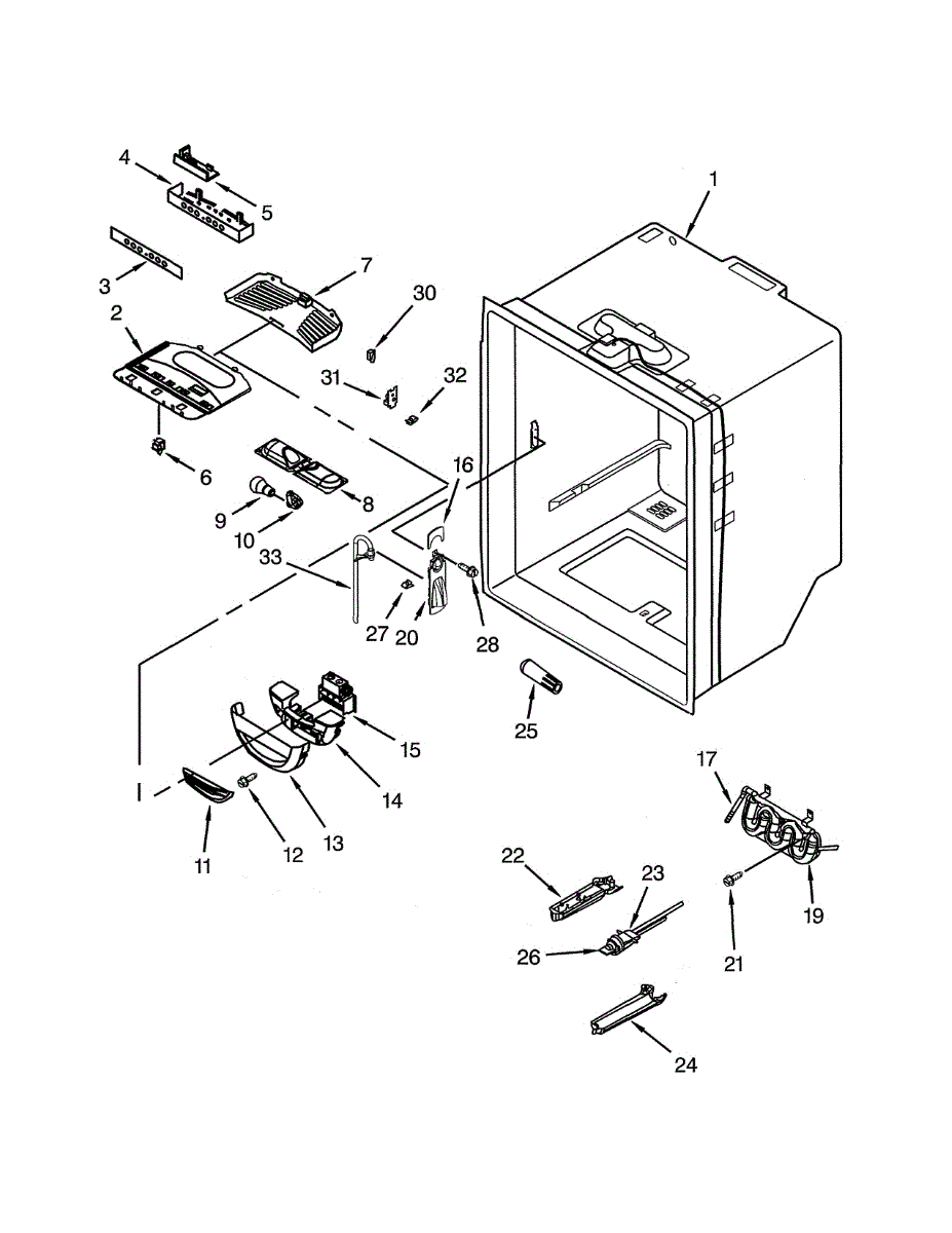Plastic housing assembly that encloses and supports ice maker components in your refrigerator. Replace if cracked, broken, or damaged from impact.