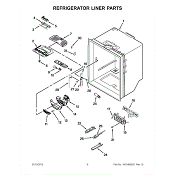 The Water Filter Cover is an OEM part for Whirlpool refrigerators. This cover encases and protects the water filter, ensuring it remains secure and clean while also blending seamlessly with the refrigerator's interior design.