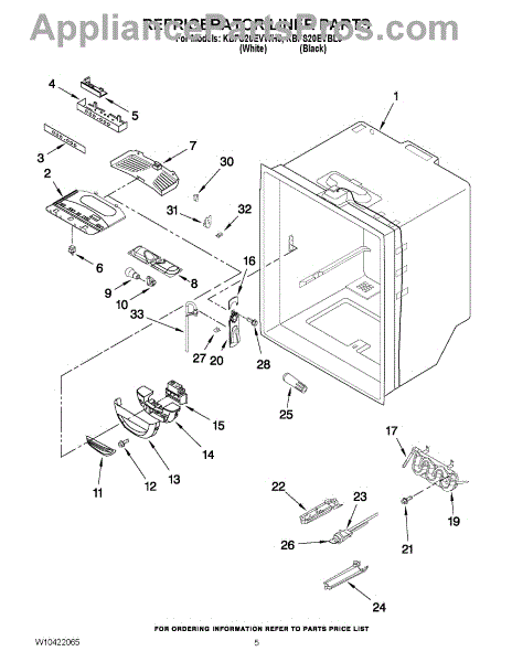 Parts for Kitchenaid KBFS20EVWH5: 03 - Refrigerator Liner Parts