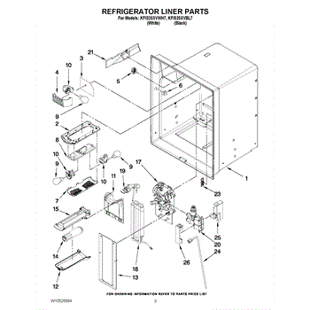 The Reservoir is a Whirlpool OEM replacement part for Whirlpool side-by-side refrigerators. This assembly does include the filter head. The filter head connects the external filter cartridge to the internal reservoir. The reservoir holds filtered water that is dispensed from the external door dispenser. Causes can be normal wear to sealing components, cracks in plastic from repeated pressure changes, or mineral buildup affecting water flow. Symptoms of a problem include: