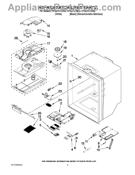 Parts for Kitchenaid KFIS27CXWH2: 03 - Refrigerator Liner Parts