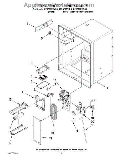 The Reservoir is a Whirlpool OEM replacement part for Whirlpool side-by-side refrigerators. This assembly does include the filter head. The filter head connects the external filter cartridge to the internal reservoir. The reservoir holds filtered water that is dispensed from the external door dispenser. Causes can be normal wear to sealing components, cracks in plastic from repeated pressure changes, or mineral buildup affecting water flow. Symptoms of a problem include: