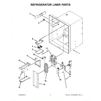 The Reservoir is a Whirlpool OEM replacement part for Whirlpool side-by-side refrigerators. This assembly does include the filter head. The filter head connects the external filter cartridge to the internal reservoir. The reservoir holds filtered water that is dispensed from the external door dispenser. Causes can be normal wear to sealing components, cracks in plastic from repeated pressure changes, or mineral buildup affecting water flow. Symptoms of a problem include: