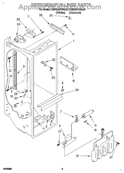 The Air Diffuser Assembly is an OEM part for Whirlpool refrigerators. It regulates the airflow between the refrigerator and freezer compartments, ensuring the proper distribution of cold air to maintain the desired temperatures in both sections.