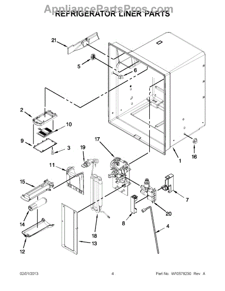 The Reservoir is a Whirlpool OEM replacement part for Whirlpool side-by-side refrigerators. This assembly does include the filter head. The filter head connects the external filter cartridge to the internal reservoir. The reservoir holds filtered water that is dispensed from the external door dispenser. Causes can be normal wear to sealing components, cracks in plastic from repeated pressure changes, or mineral buildup affecting water flow. Symptoms of a problem include: