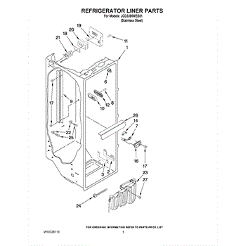 The Water Reservoir Tubing is an OEM replacement part for Whirlpool refrigerators. It is a flexible plastic tubing that replaces the water reservoir and holds the water for the ice maker and dispenser. Causes can include cracks from heat or cold exposure over time, punctures from sharp edges during installation, or deterioration of plastic tubing that impacts integrity. Symptoms of bad water reservoir tubing include: