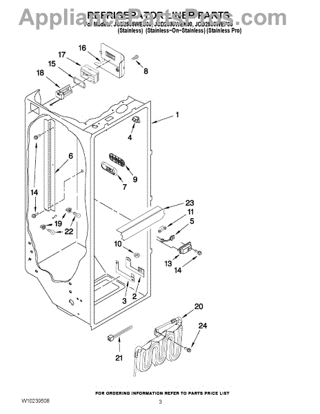 The Water Reservoir Tubing is an OEM replacement part for Whirlpool refrigerators. It is a flexible plastic tubing that replaces the water reservoir and holds the water for the ice maker and dispenser. Causes can include cracks from heat or cold exposure over time, punctures from sharp edges during installation, or deterioration of plastic tubing that impacts integrity. Symptoms of bad water reservoir tubing include: