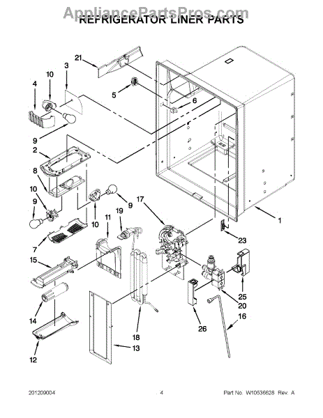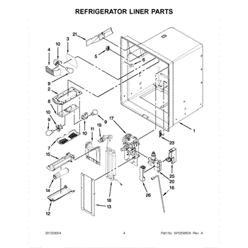 The Reservoir is a Whirlpool OEM replacement part for Whirlpool side-by-side refrigerators. This assembly does include the filter head. The filter head connects the external filter cartridge to the internal reservoir. The reservoir holds filtered water that is dispensed from the external door dispenser. Causes can be normal wear to sealing components, cracks in plastic from repeated pressure changes, or mineral buildup affecting water flow. Symptoms of a problem include: