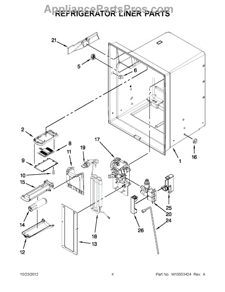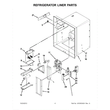 The Reservoir is a Whirlpool OEM replacement part for Whirlpool side-by-side refrigerators. This assembly does include the filter head. The filter head connects the external filter cartridge to the internal reservoir. The reservoir holds filtered water that is dispensed from the external door dispenser. Causes can be normal wear to sealing components, cracks in plastic from repeated pressure changes, or mineral buildup affecting water flow. Symptoms of a problem include: