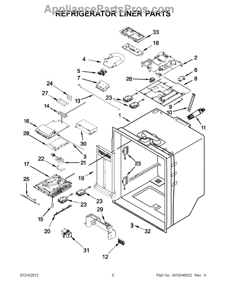 The Reservoir is an OEM part for Whirlpool refrigerators. It is designed to store and dispense water within the refrigerator, typically connecting to the water dispenser and ice maker. This reservoir ensures a consistent supply of water, facilitating the production of ice and providing chilled water for consumption.
