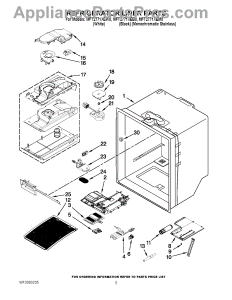Note: The Fan Motor with Harness also includes the Defrost Thermostat and Thermistor.