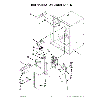 The Reservoir is a Whirlpool OEM replacement part for Whirlpool side-by-side refrigerators. This assembly does include the filter head. The filter head connects the external filter cartridge to the internal reservoir. The reservoir holds filtered water that is dispensed from the external door dispenser. Causes can be normal wear to sealing components, cracks in plastic from repeated pressure changes, or mineral buildup affecting water flow. Symptoms of a problem include: