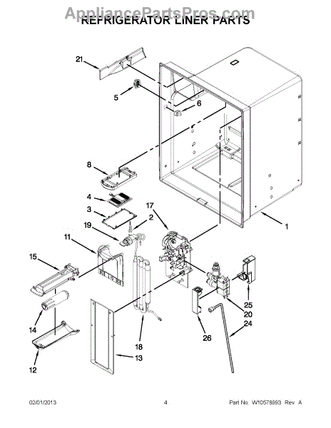 The Reservoir is a Whirlpool OEM replacement part for Whirlpool side-by-side refrigerators. This assembly does include the filter head. The filter head connects the external filter cartridge to the internal reservoir. The reservoir holds filtered water that is dispensed from the external door dispenser. Causes can be normal wear to sealing components, cracks in plastic from repeated pressure changes, or mineral buildup affecting water flow. Symptoms of a problem include: