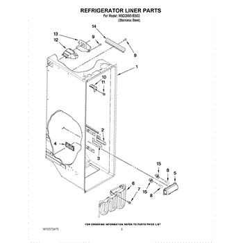 The Water Reservoir Tubing is an OEM replacement part for Whirlpool refrigerators. It is a flexible plastic tubing that replaces the water reservoir and holds the water for the ice maker and dispenser. Causes can include cracks from heat or cold exposure over time, punctures from sharp edges during installation, or deterioration of plastic tubing that impacts integrity. Symptoms of bad water reservoir tubing include: